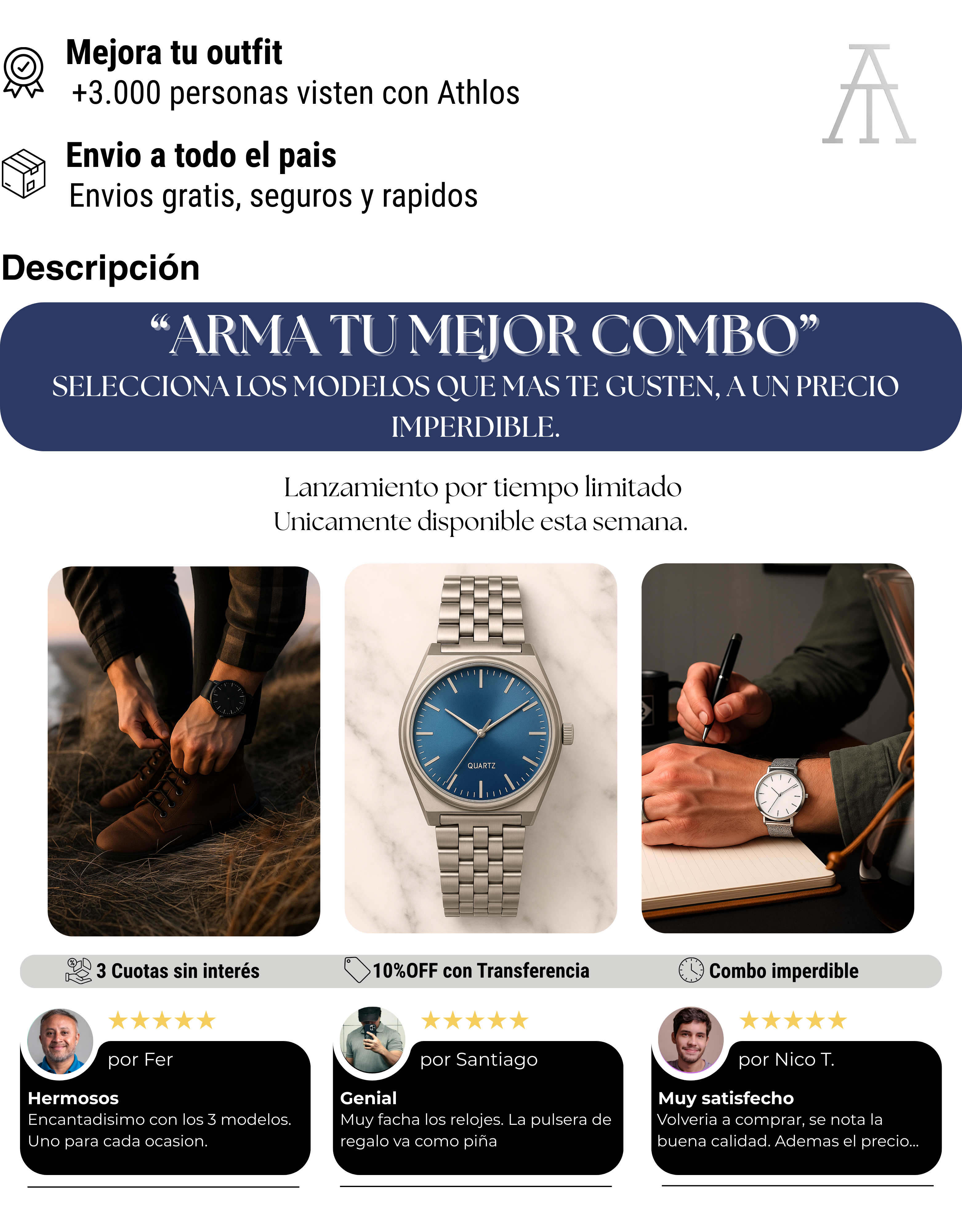 3 cuotas de $33.333,33 sin interés | CFT: 0,00% | TEA: 0,00% | Total $100.000,00 |